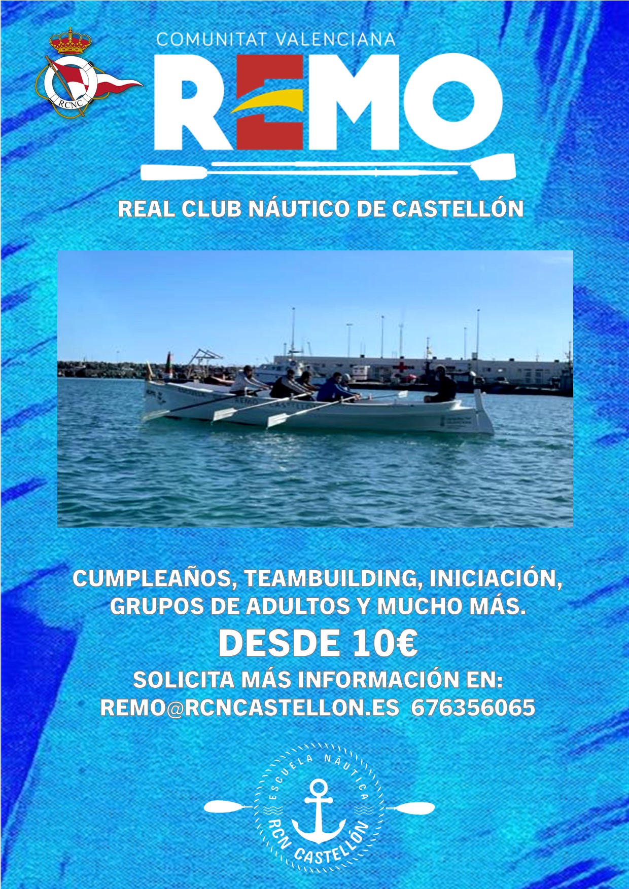 En el Real Club Náutico de Castellón puedes ya practicar nuestra nueva modalidad deportiva, el Remo.